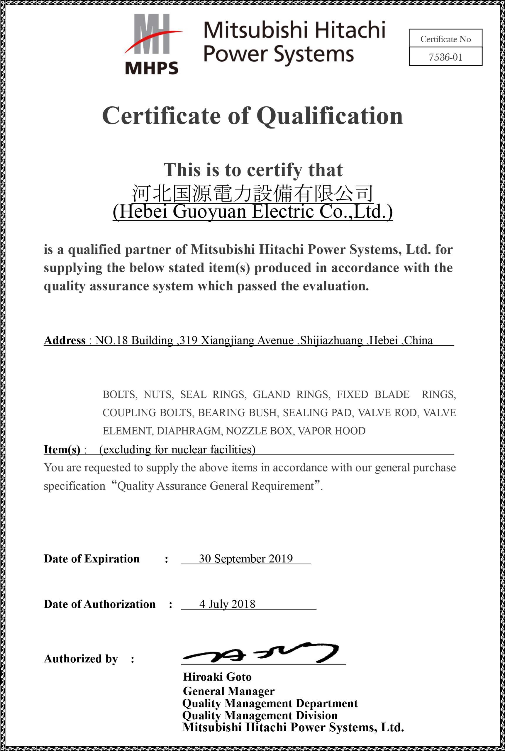北京北重汽輪電機(jī)有限責(zé)任公司合格供方證書