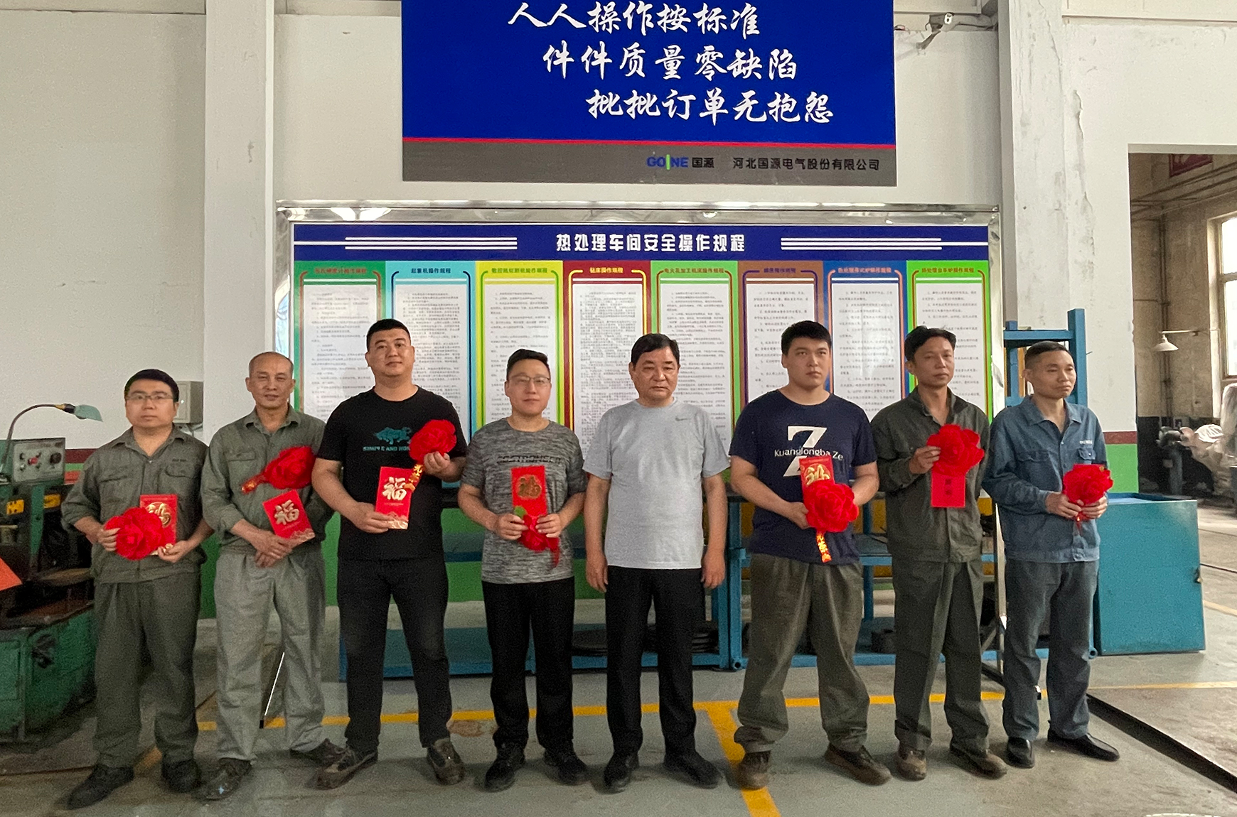 董事長劉運智先生與生產(chǎn)標(biāo)桿現(xiàn)場第一戰(zhàn)役“4人小組”在“國源文化一條街”合影。劉董要求全公司各級管理干部和全體員工,要向受到表彰獎勵的各類現(xiàn)場標(biāo)兵和標(biāo)桿車間學(xué)習(xí)。更希望受到表彰獎勵的各類標(biāo)兵和標(biāo)桿車間要珍惜公司給予的榮譽、給予的認可、給予的尊重、給予的獎勵,要戒驕戒躁、再接再厲、再創(chuàng)高標(biāo)準(zhǔn)、高精益、高質(zhì)量、高精度、高看點的品牌現(xiàn)場,為奪取六月份標(biāo)桿現(xiàn)場榮譽的多連冠、標(biāo)兵的多連冠、獎金的多連冠而加油、加力、加快拼搏實干吧!